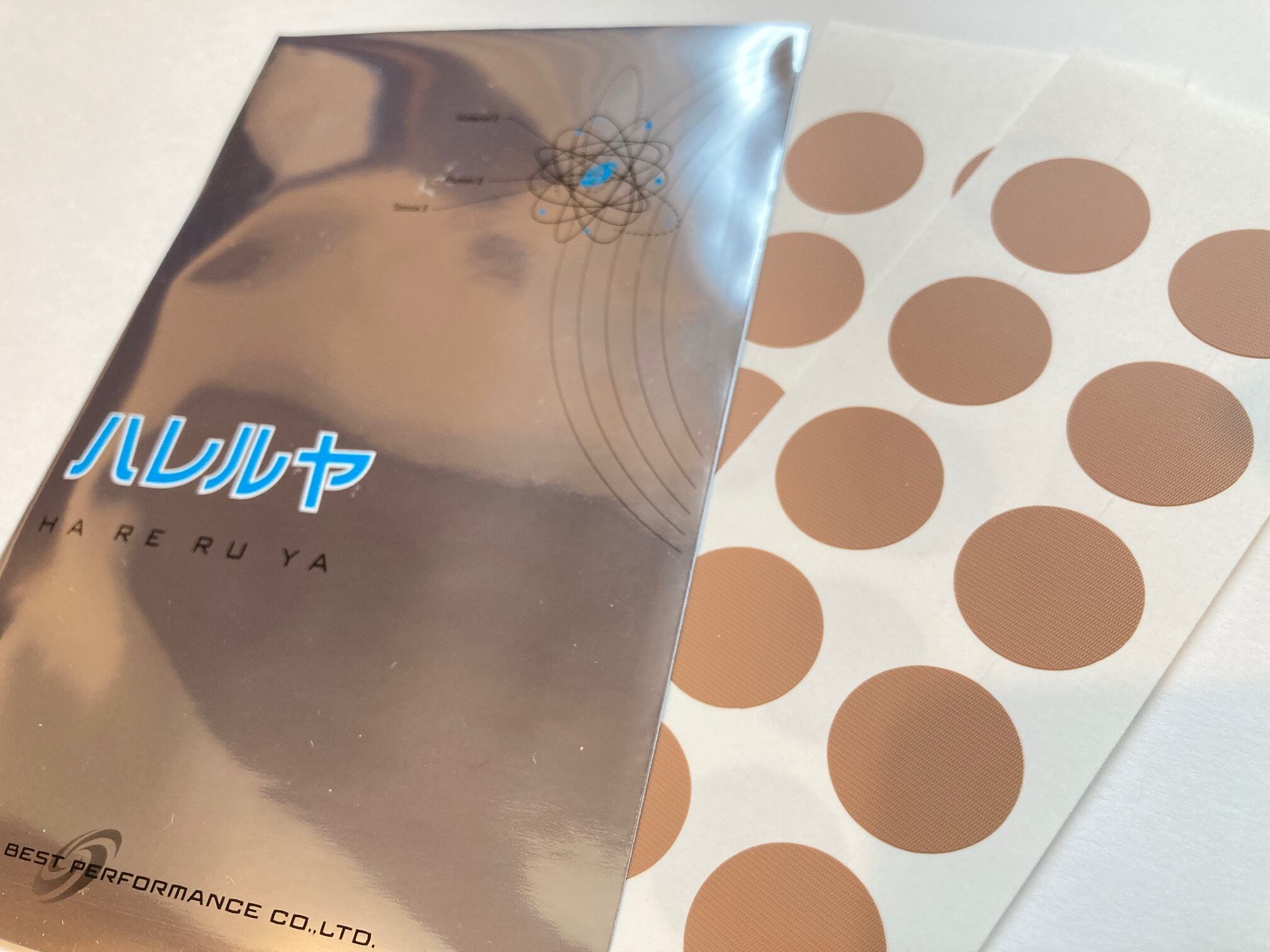 ハレルヤシールは、1ヶ所に貼るだけで体全体へ効く『不思議な絆創膏』です。テープに含有されているマイナス電子が コリや痛みの原因であるプラス電子を中和し、身体の調子・バランスを整えてくれるという不思議なパッチです。